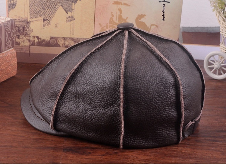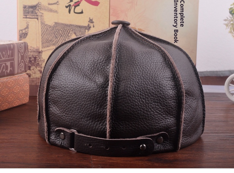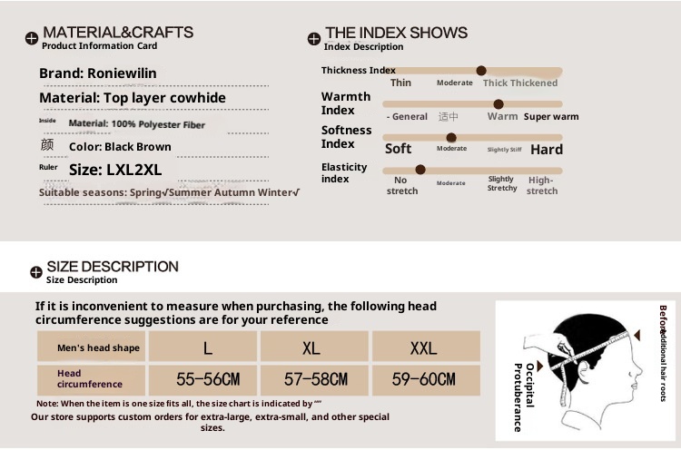 Product information: Fabric name: Cowhide Color: Black, Brown Crown style: Dome Size: L(55-56cm),XL(57-58cm),XXL(59-60cm) Function: protect the neck, breathable, warm, windproof, sunshade